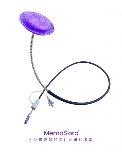心泰医疗(形状记忆)MemoSorb 可降解PFO封堵器:上海形状记忆合金材料有限公司生产,全球首个获批上市可降解PFO封堵器,2023年获批,注册证编号:国械注准20233131307,共8个规格型号;由封堵器支架(含成型环)、阻流膜、缝合线和成型线、拉线器组成,封堵器上带有显影标记。封堵器支架为聚对二氧环己酮(PDO)可降解丝编织而成,内部缝有聚乳酸(PLA)可降解阻流膜,显影标记为铂。