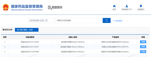 二代Amplatzer Talisman PFO封堵器为2023年在国内获批,为预装输送钢缆双铆产品,注册证编号:国械注进20233130485,4种规格型号;配套输送系统(卵圆孔未闭封堵器传送鞘)注册证编号:国械注进20233030486。