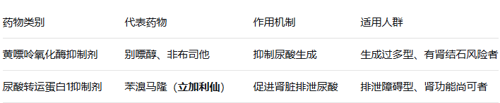 推荐目标:血尿酸<360μmol/L(有痛风石者<300μmol/L)